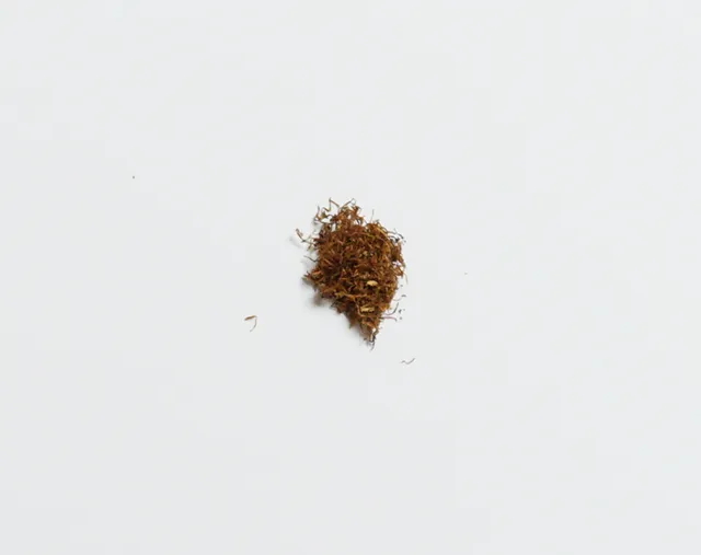 手巻きシャグ用に細かく刻まれた薄い茶色、こげ茶が入り組んでおり、触ってみると柔らかく、手巻きにする際は特に神経を尖らせないでもうまく巻けそうに思いました。