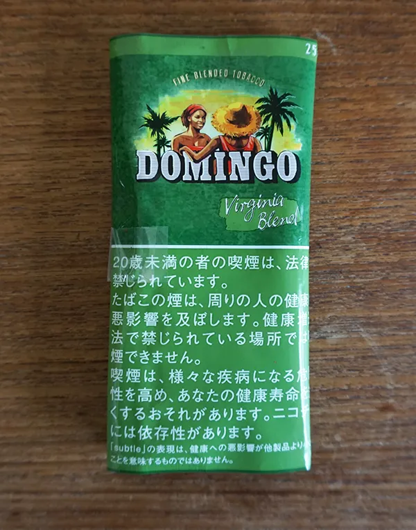 「バージニアブレンド」を冠するシャグは、ゴールデン・バージニア、マックバレン・バージニアブレンドなどが有名ですが、特にグラム単価が安く、アジアタバコなどもブレンドして個性を打ち出しているのが今回レビューする銘柄、DOMINGO(ドミンゴ)バージニアブレンドです。