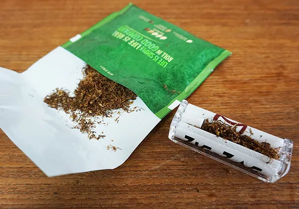 前述の通り、葉の刻みが細かくサラサラしている分、ブレンドがくずれないよう入り組む葉をバランス良く整えながら、巻く際の力加減も慎重に行っていきましょう。しっかり巻いたところで火をつけて一服……。
