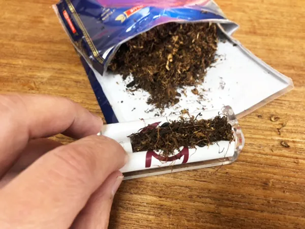 一般的なシャグの中には、極めて乾いていてフワフワしていてまとめにくいものがあるのに対し、ドラムの葉はモサモサと粘度があるため、紙巻きにする際は特に扱いやすくまとめやすそうです。