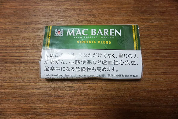 同社製品にはパイプたばこ、スモークレスたばこなどもラインナップされていますが、近年の主力商品の一つがシャグのようで、今回はこのMAC BAREN(マックバーレン)シリーズの中からバージニア葉のみを100%採用したブレンドのMAC BAREN(マックバーレン)バージニア・ブレンドを試すことにします。