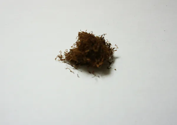 茶褐色の葉は細く、散り散りではありますが、保湿効果を加えているからでしょうか、粘度があり、全体的にはゴワゴワした印象。