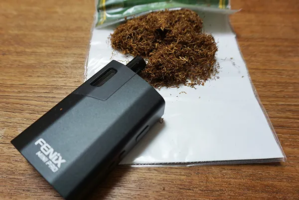 まずは、毎度おなじみの扱いやすいヴェポライザー・FENiX MINI PROで試すことにしました。190度から加熱をスタート。さっそく喫煙していきます。