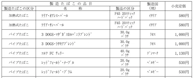 財務省HPで公開された情報によると、アイコスイルマ専用銘柄として以下の銘柄が発売予定です。