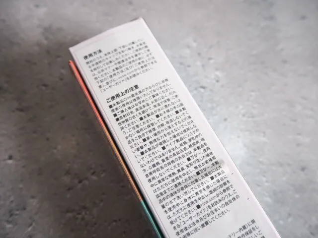 箱は手のひらに収まるくらいのサイズです。表面は英語表記ですが側面や裏面の注意書きは日本で記載されています。