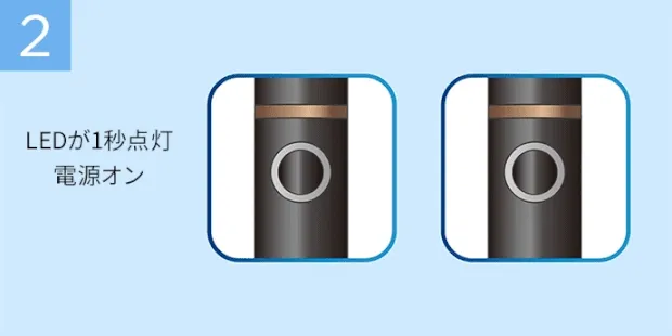 ずっとLEDランプが青色の状態は充電完了の合図となります。