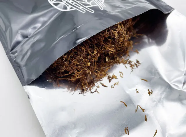 さっそく開封してみました。さすがブラックスパイダーとも言うべき香料の表現度が高く、栗、そしてお酒の濃厚で甘い香りがシャグ全体から漂ってきます。ずっと嗅いでいたくなるような心地よい香りですが、一方で香料の量がかなり多く、どれだけ深く嗅いでも、たばこ葉の香りを確認することはできません。