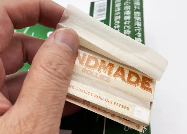 さて、キャメル・メンソールに付録されているペーパーは、筆者も割と好きなハンドメイド・ローリーズというスローバーニングのもの。紙厚が薄い黄土色のペーパーで、紙巻きにした際、たばこ葉が透けて見えるビジュアルも良くて気にいっています。実際吸っても、たばこ葉をしっかり蒸してくれる一方、喫味の邪魔をしないのが特徴で、このペーパーが付録されていると少し嬉しい気持ちになります。