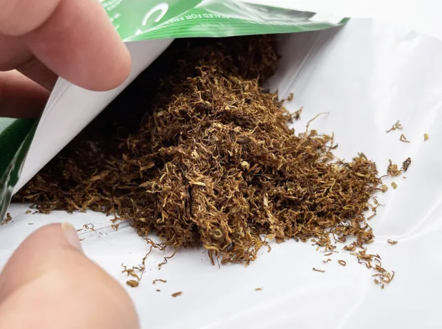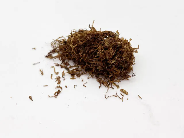 肝心のたばこ葉に鼻を近づけてみると、まず強いメンソール香料の香りがします。さらに深く吸ってみると、たばこ葉本来の香ばしい香りが漂います。JTのシャグですから、香料キツめなだけの粗悪なものではないと信じていますが、このたばこ葉の香りを感じると、さらに安心感が増します。