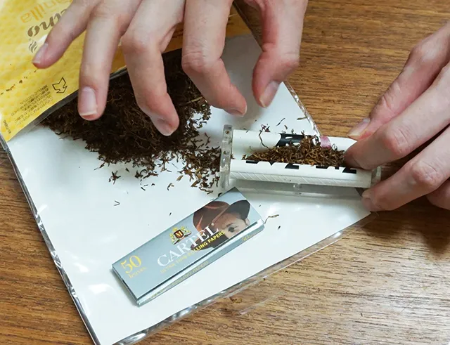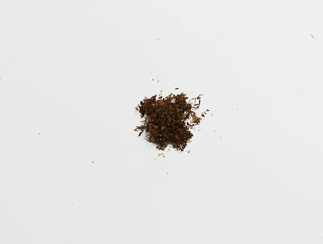 少々粗めにカットされたブラウンのたばこ葉ですが、葉片はほとんどありません。開封時に感じた通り、香料は多そうである一方、湿度は意外となく、たばこ葉自体も極めて柔軟。