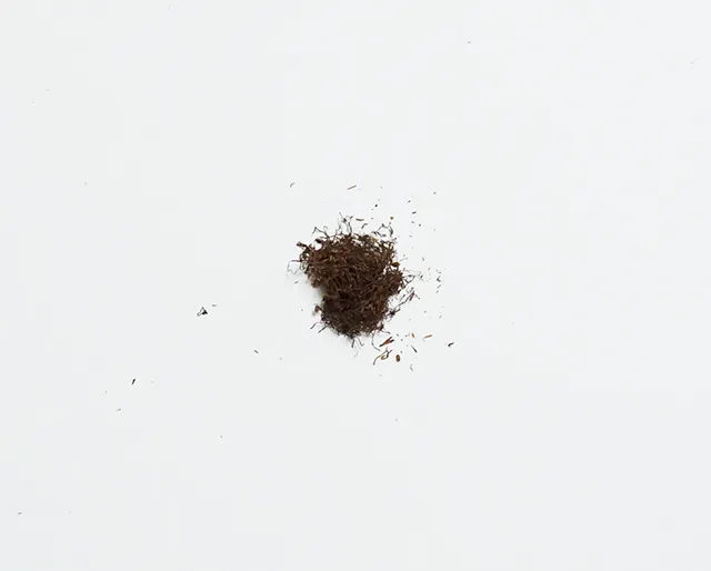他方、そのたばこ葉は黒々としており、また0.3mmの細いカットによってたばこ葉全体がかなりモサっと入り組んでいる印象でした。