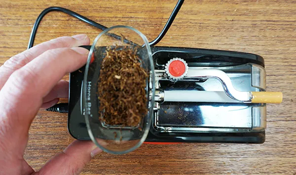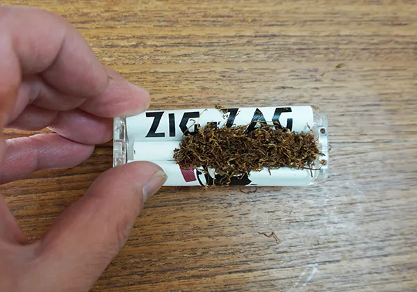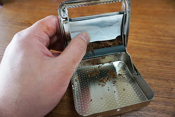 ④蓋の一部から手巻きたばこが飛び出して完成