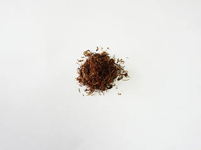 刻みの細かい濃い茶色の葉は香料のせいか粘度強め。