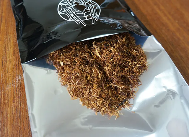 1パフ目、まず舌先に感じるのはたばこ葉のピリッとしたインパクトですが、このクセを後からマスカットの香料が優しく包んでくれるような喫味となっており、全体的には実に計算されたフレーバー系シャグであることがわかりました。