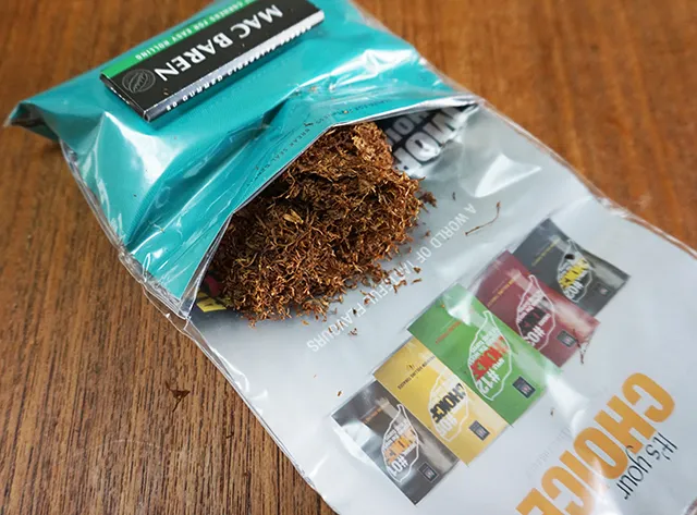 CHOICEシリーズのフレーバー系シャグに共通するバージニア葉、バーレー葉、オリエント葉のシルクカットの細かい刻みはチョイス・クールミントも同様です。