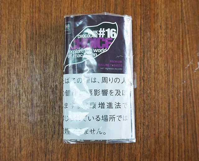 CHOICEシリーズのフレーバー系シャグのベースとなるバージニア葉、バーレー葉、オリエント葉のブレンドに、ビターチョコレートの香料を加えた銘柄のようです。