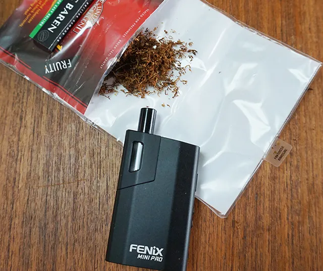毎度お馴染みの扱いやすくダイナミックな喫味を味わえるヴェポライザー、FENiX MINI PROで試すことにしました。190度から加熱をスタート。さっそく喫煙していきます。