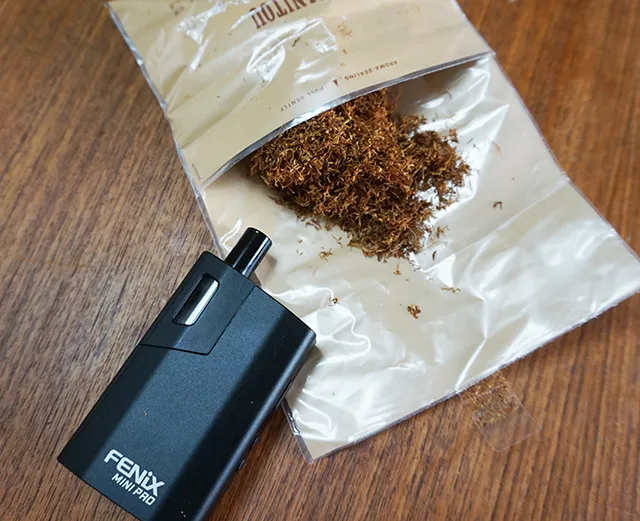 毎度お馴染み、扱いやすくダイナミックな喫味を味わえるヴェポライザー、FENiX MINI PROで試すことにしました。190度から加熱をスタート。さっそく喫煙していきます。