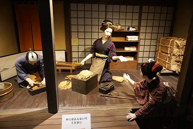 ↑江戸のたばこ屋の様子。夫婦で営む店から、刻み職人を抱える大規模店まで様々だったそうです[/caption]