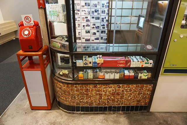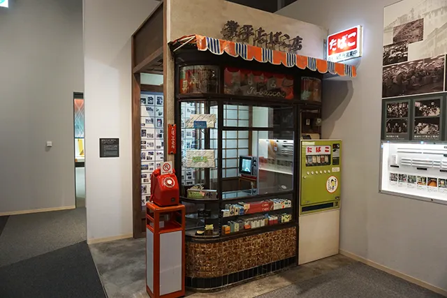 ↑たばこと塩の博物館の展示スペースには、昭和のたばこ店を再現したスペースが[/caption]