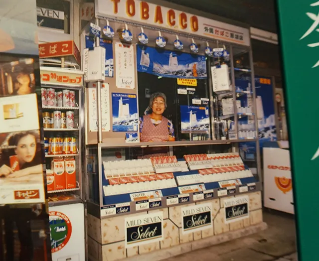 ↑たばこと塩の博物館に展示されていた往年のたばこ店の写真。このたばこ店ではマイルドセブンとキャビンをかなり推していたことが伝わってきます[/caption]