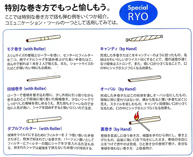 品質の良いシャグ、品質の良いペーパーを使うのは最低の条件ですが、ご自身に合った巻き方、ブレンドを試していただければと思います。